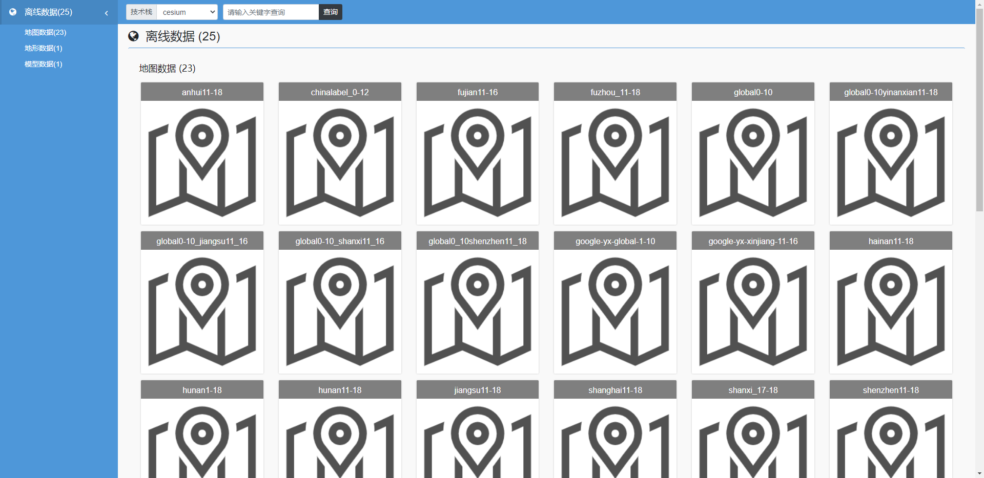 - 发布地图服务 cesiumlab 输出的紧凑型文件 .pak 以及标注的 .mbtiles .db